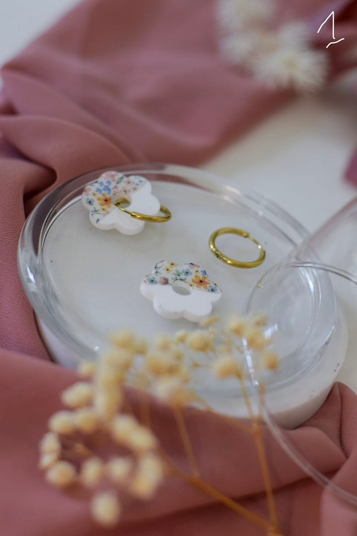 Créoles en Acier inoxydable doré agrémenté d’un medaillon fleurs en plexi fleuri