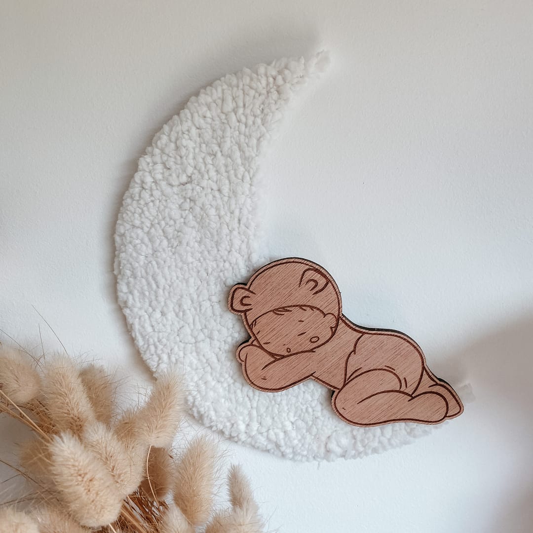 Jolie Lune toute douce a accrocher avec son bébé endormi.