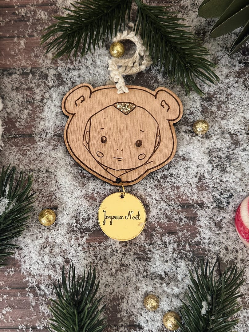 étoile en bois et en tissus bouclette effet moumoute personnalisable avec le prénom
